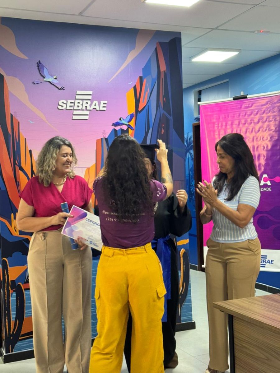 Além disso, as alunas puderam comemorar a formatura com direito a beca, entrega de certificados e participação da Coordenação Regional do SEBRAE na linda agência que está prestes a ser inaugurada, trazendo um charme contemporâneo, com mobiliário moderno, comunicação visual e paisagismo harmônicos. E isso se deve às incansáveis Nadja Maria, Ana Paula Merces, Fábio Alves, equipe do Sebrae Paulo Afonso e o corpo diretivo da Coordenação Regional, Carlos Cointeiro e Priscila Carla e os demais colaboradores da instituição.
