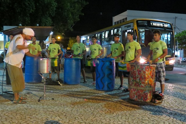 Mas isso não foi motivo para diminuir o brilho de quem se fez presente. No meio da Av Getúlio Vargas o grupo Percussiclando estava aguardando o cortejo e fez uma breve, porém belíssima apresentação musical, fazendo muitos dos que estavam ainda trabalhando nas lojas darem uma pausa em seus trabalhos para ver. E assim, com toda a alegria dos manifestantes e dos que iam vendo, passando e acompanhando o cortejo seguiu com a finalização na Praça da Tribuna.
