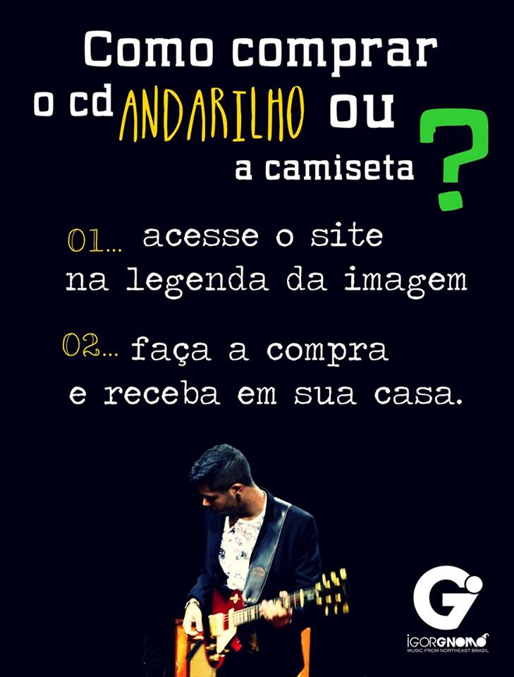 11 de abril de 2014No dia 10 de março desse ano, o guitarrista Igor Gnomo publicou em sua rede social uma postagem falando a respeito da gravação do novo trabalho intitulado “Andarilho” que vem sendo batalhado desde o ano de 2012. Sua postagem dizia o seguinte: “Se você acredita no nosso trabalho, nas nossas batalhas, na música independente, nunca pode ir aos nossos shows, mas quer AJUDAR! Por favor, peço humildemente a todos que compartilhem, avisa a um amigo e se puder colaborar comprando o cd, MELHOR AINDA. Sou um artista independente, estudo, pesquiso e espalho a minha obra, Que Deus abençoe a você e conto com a sua ajuda!”
