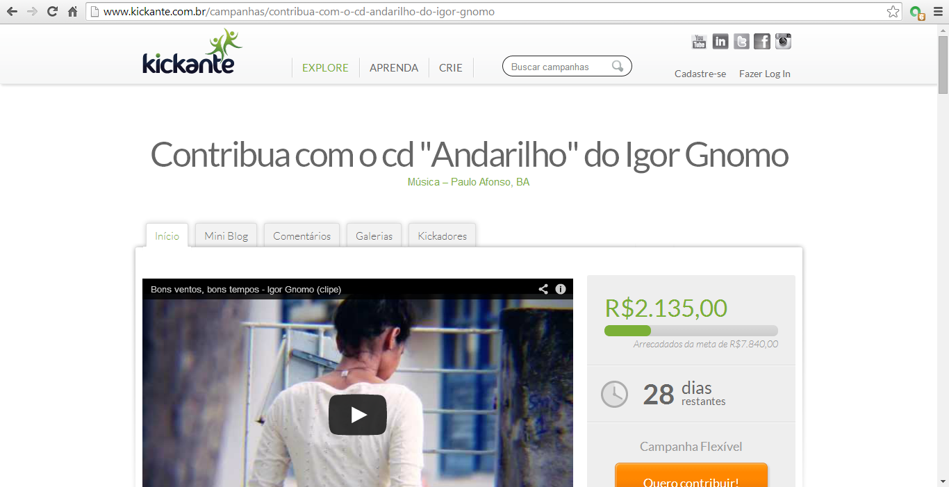 Sem dúvidas, essa não é uma tarefa das mais fáceis mas isso, em momento algum, desanima o músico que sabe o potencial que tem e luta diariamente para a melhoria constante na qualidade musical. Sendo assim, a campanha foi lançada como uma PRÉ VENDA do material que está sendo preparado em um site de financiamento coletivo (crowdfunding), o http://www.kickante.com.br. Acesse a campanha clicando AQUI