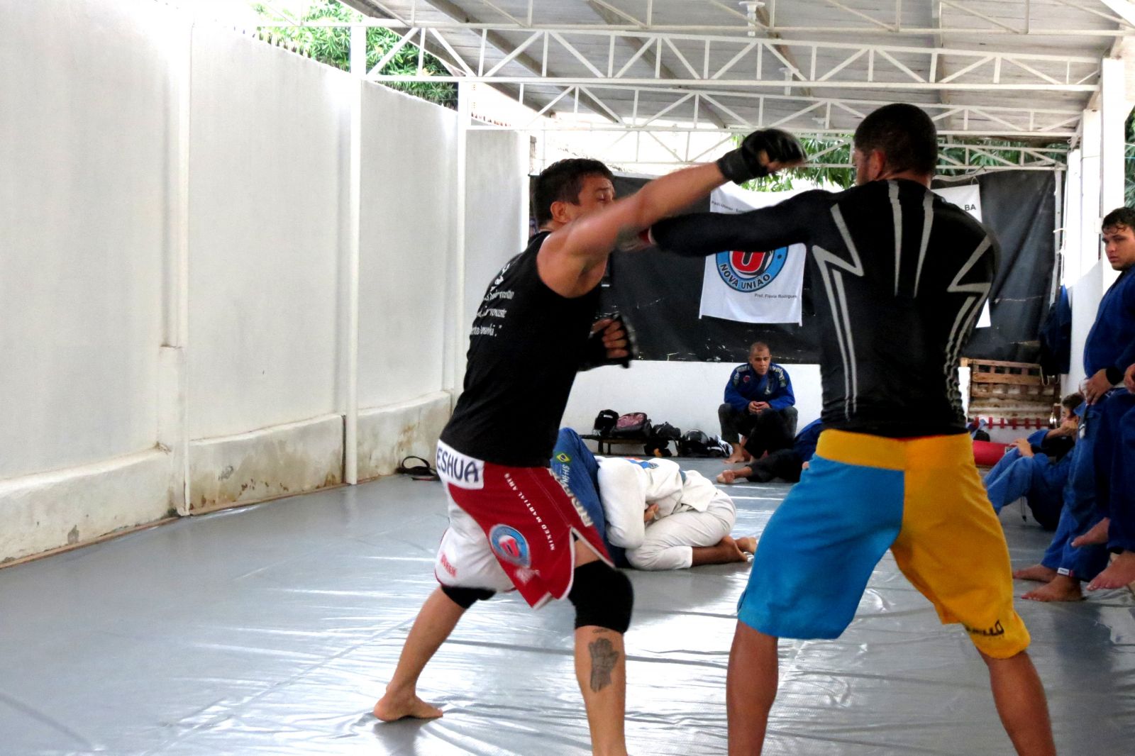 O 1º contato com o jj foi pela internet e aqui na região nçao existia Jiu Jitsu na época. Em 98 mais ou menos. Viu uma aula de jJiu Jitsu em Recife e se apaixonou. Comprou um kimono sem sequer ter a modalidade na cidade. Um tempo depois vieram professores para cá e eu de imediato comecei. “Eu comecei a dar aula porque o nosso professor viajava muito e eu era recém faixa azul. Ele viajava e eu tinha q dar aula para continuar o jiu jitsu em Paulo Afonso porque quando ele viajava o mais graduado era eu. Aí foi meio que por acaso fui puxando aula como faixa azul, que eu sei que não podemos mas era a circunstancia da época. Aqui na região não tinha nem faixa marrom, imagine preta, o professor era roxa na época. Primeiro dava aula p não parar a equipe e depois... Quando estava com faixa marrom veio a ideia de colocar a academia, era 2006” diz ele.